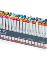 This 72A Classic colour set includes a wide variety of primary and secondary colours that are commonly used in design and illustration. This set is a fantastic way for artists to build a Copic Classic collection. It covers bright vivid tones, blending shades and essential greys. It also includes a colourless blender (0). For portraits and comic illustrations we recommend adding a few colours from our Portrait Sets. The entire range of 214 Copic Classic colours can be completed by combining the Classic 72 colour Sets A, B and C (note: 100 & 110 would be duplicated).